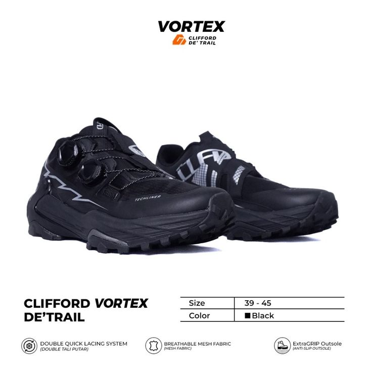 TERLARIS SEPATU CLIFFORD VORTEX DE'TRAIL SEPATU LARI OLAHRAGA HIKING OUTDOOR DOUBLE QUICK LACING SYSTEM