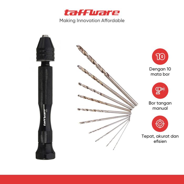 WAJIB PUNYA ! BOR TANGAN MANUAL HSS TWIST DRILLS DENGAN 10 MATA BOR - 3003 - HITAM ORI
