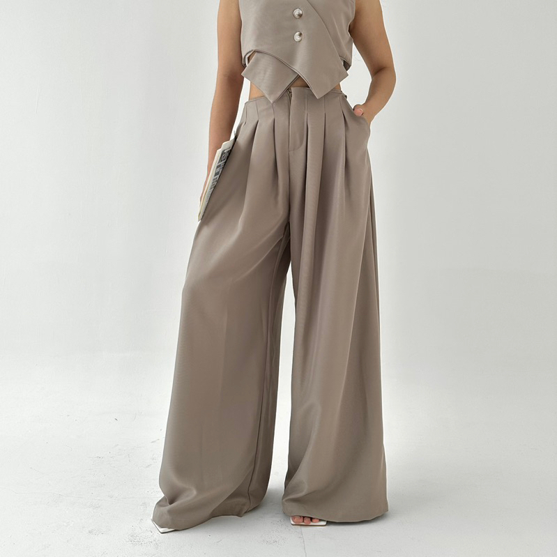 TERLARIS ALOE PANTS Celana Panjang Wanita Wide Highwaist Pants Basic Korean Long Highwaisted Trousers Murah Posha