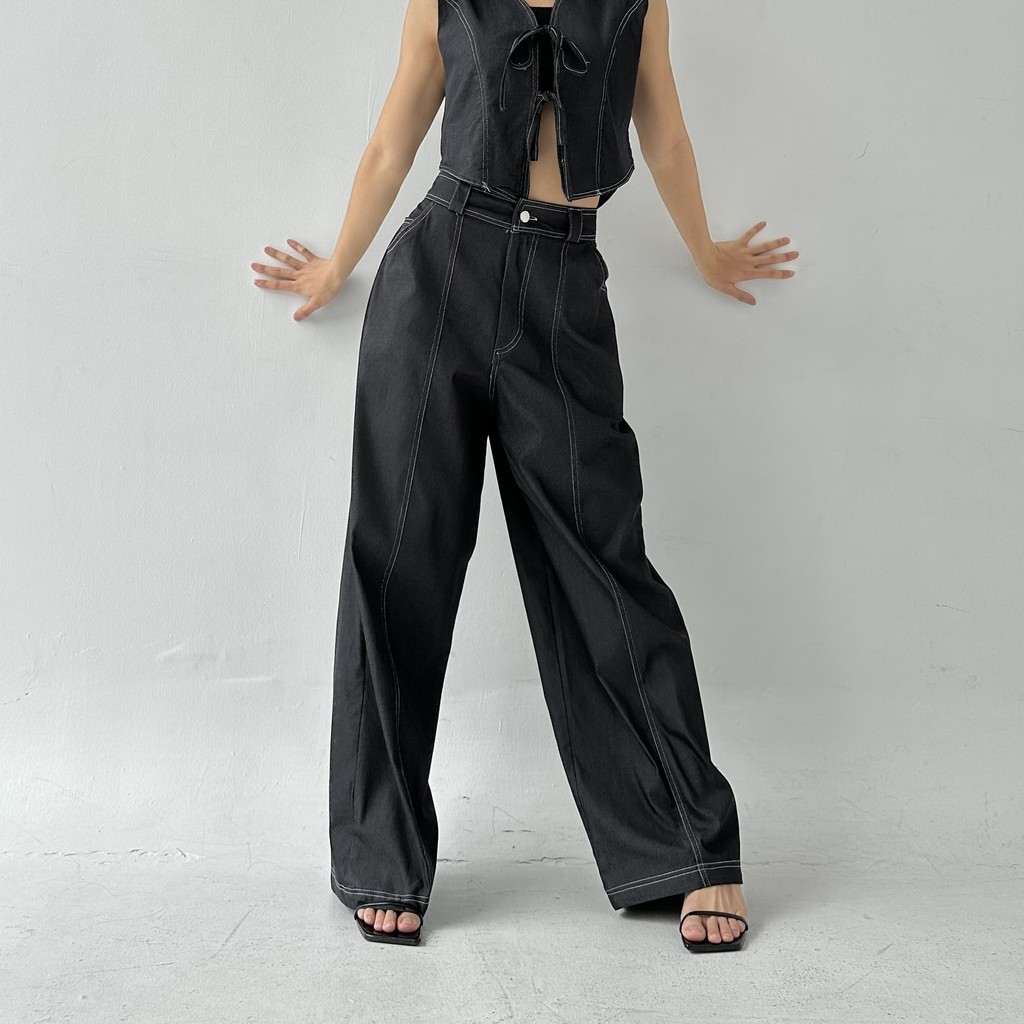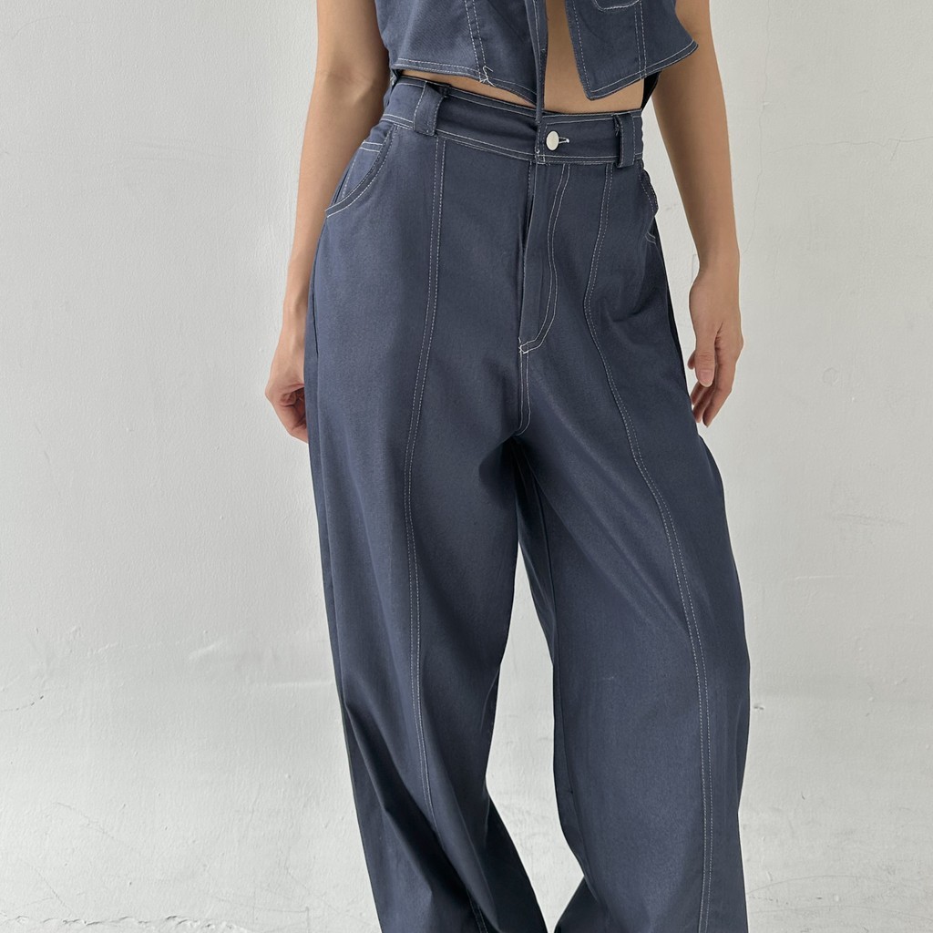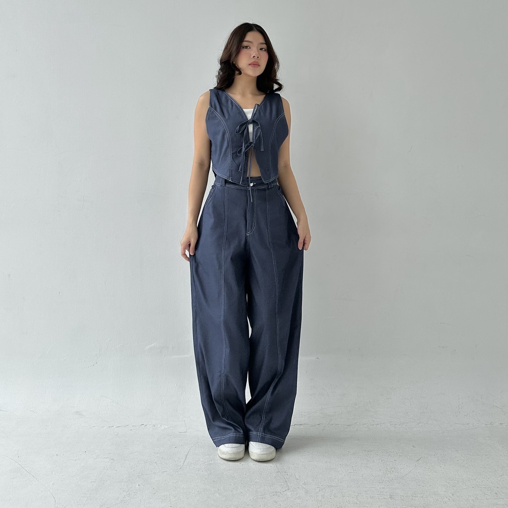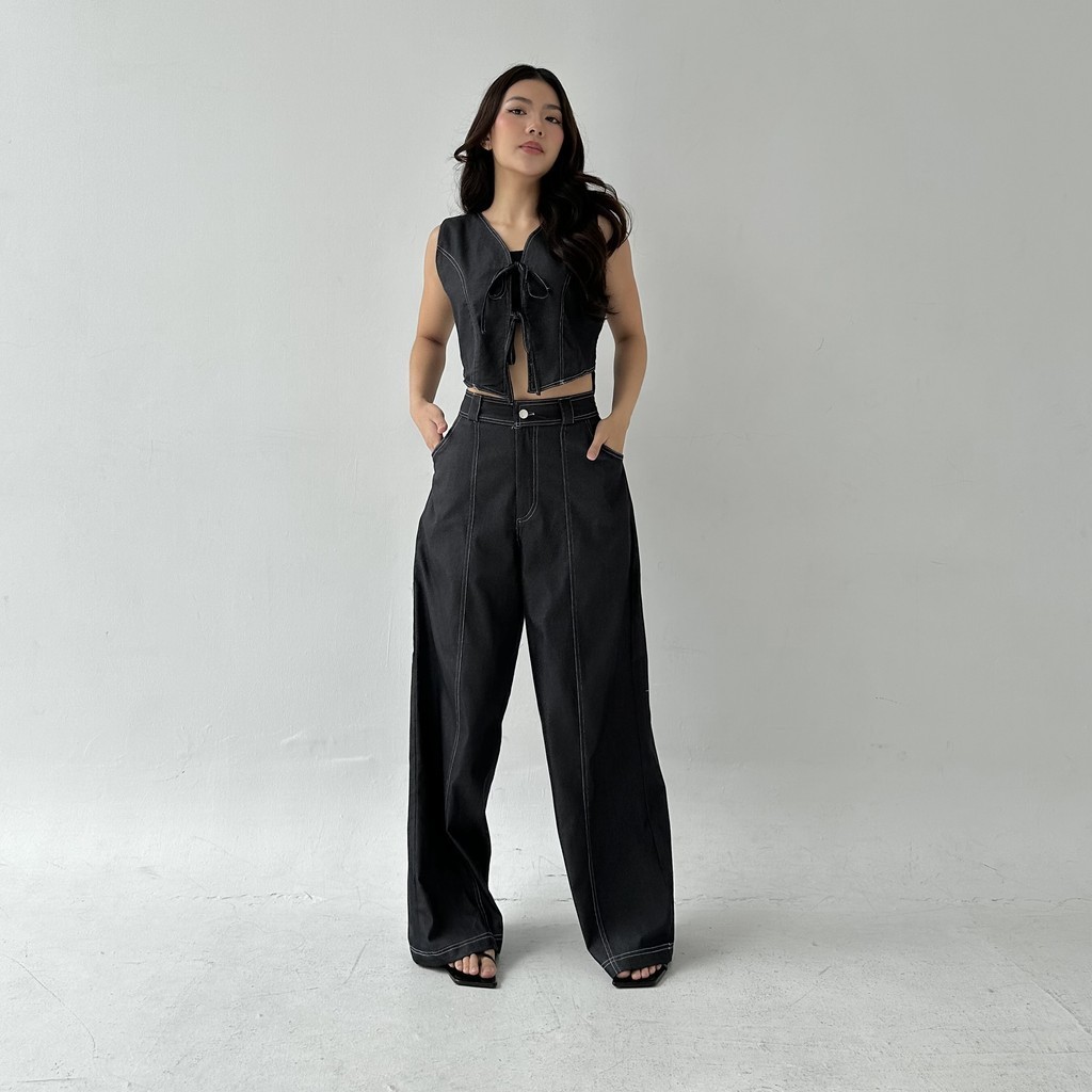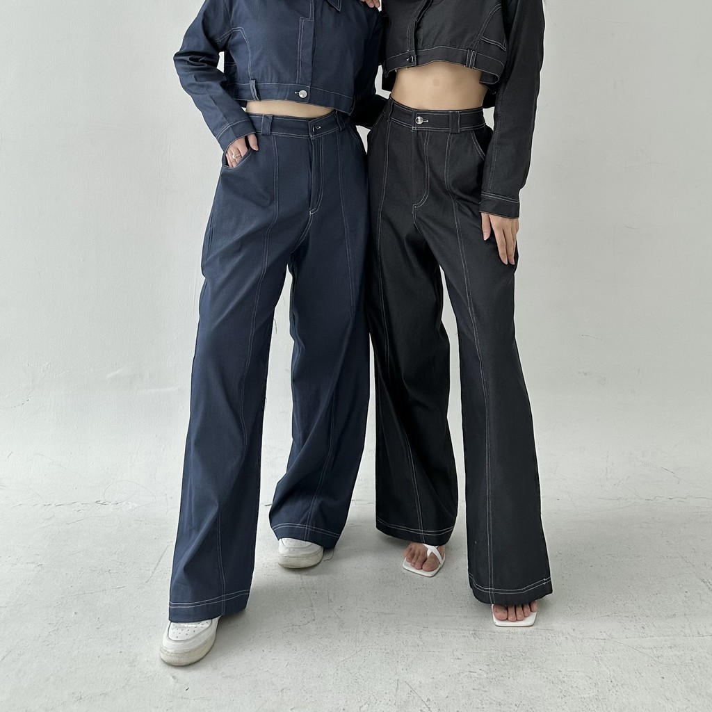 TERLARIS AXEL PANTS Celana Panjang Straight Denim Wide Leg Pants Two Tone Highwaist Wanita Trousers Lurus Baggy Kulot Highwaist Posha
