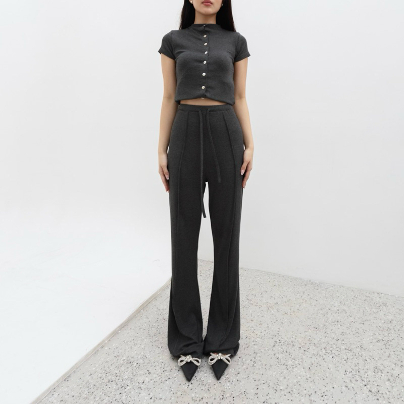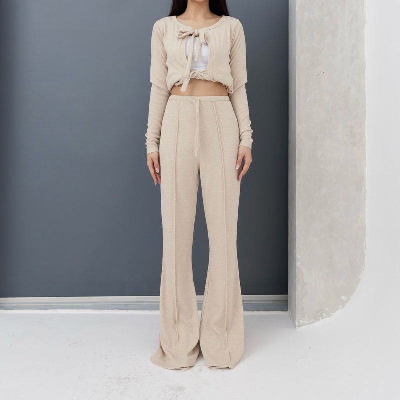 TERLARIS UNO PANTS Celana Panjang Knit Wanita Long Cullote Pants Highwaist Loose Flare Cutbray Pants Basic Rib Knit Korean Long Trousers Murah Posha