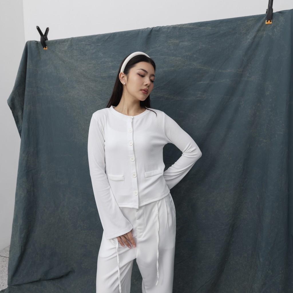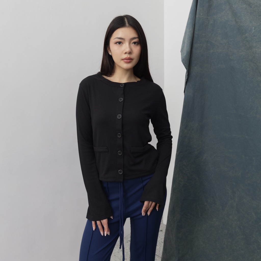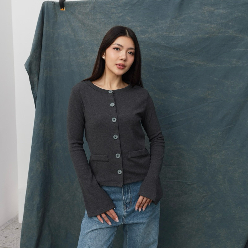 TERLARIS HALA T0P Atasan Knit Wanita Outer Lengan Panjang Cardigan Sweater Basic Korean Polo Top Baju Ribbed Knit Kancing Rib Long Sleeve Posha
