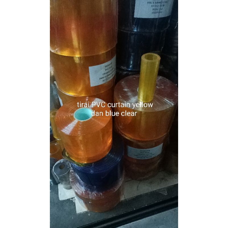 Plastik Tirai PVC curtain strip tebel 2mm x 20cm x 50m/Roll (varian warna Blue clear Dan Yellow)
