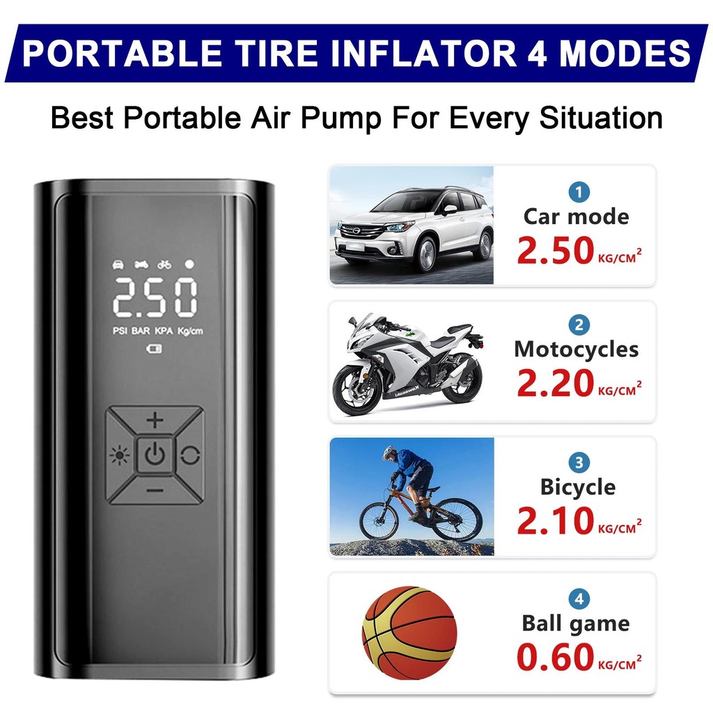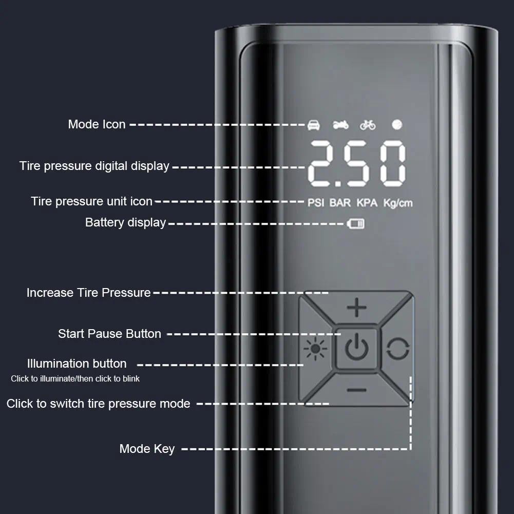 Kompresor Udara Mobil Nirkabel 120W 150PSI Pompa Udara Mobil Portabel Pompa Udara Mobil Listrik Layar LED Layar LED Tanp