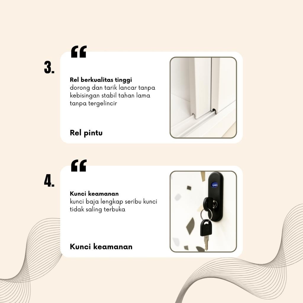 JF- Lemari Pakaian Besi Lemari Pakaian 90cm 2 pintu slidding 1 Hanger Cermin Minimalis