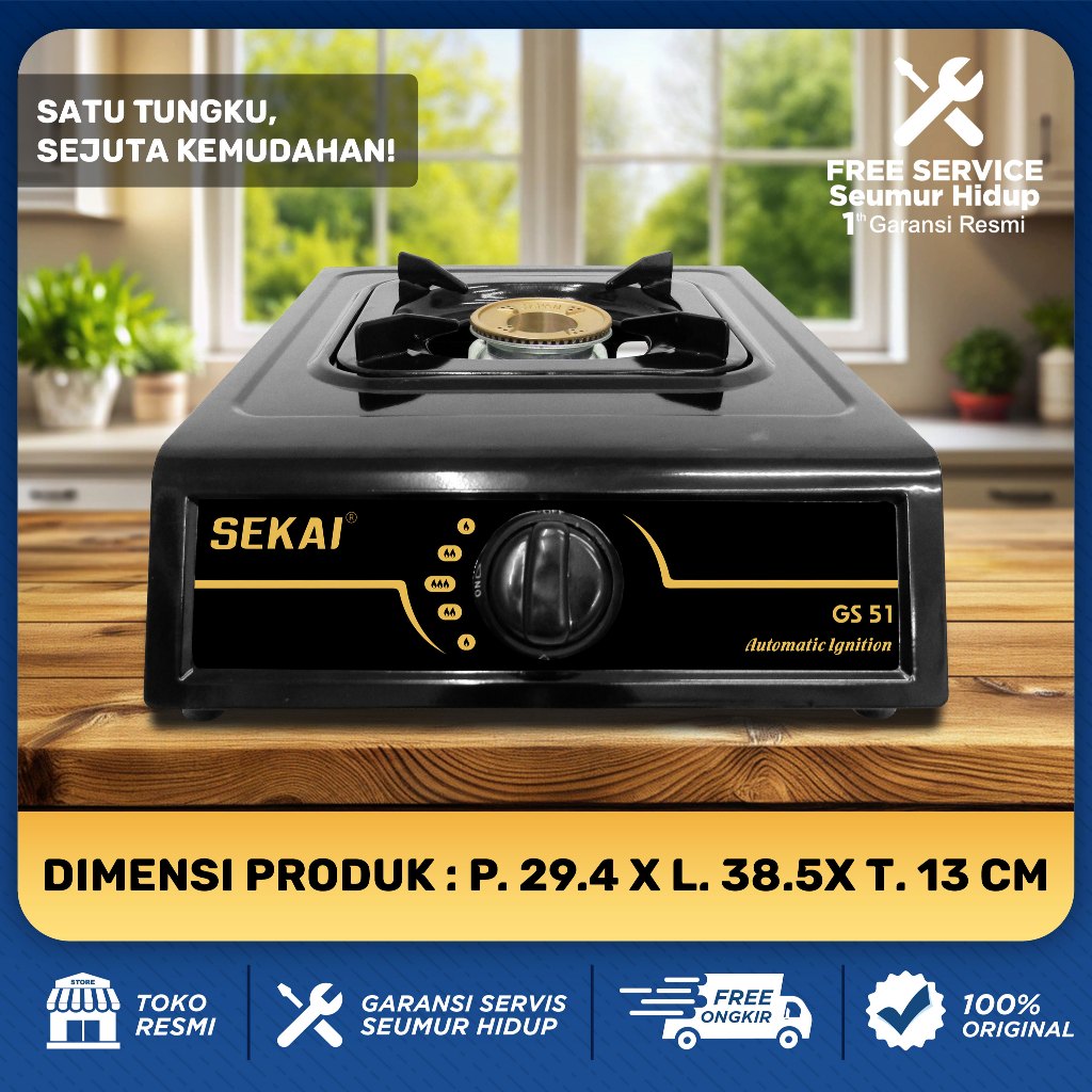 SEKAI Kompor Gas 1 & 2 Tungku Stainless Steel Anti Lengket - GS 51 / GS 92 / GS 53 / GS 93