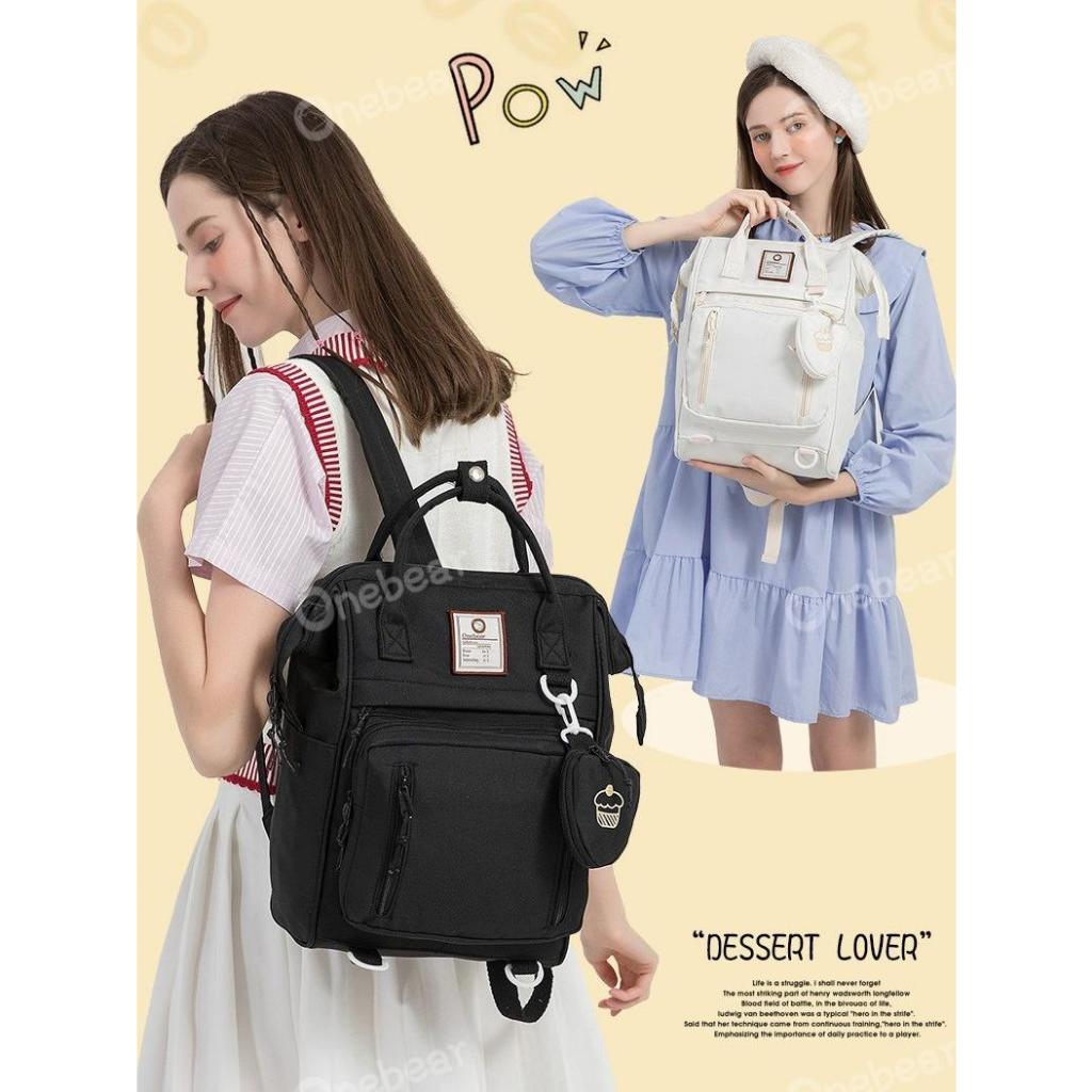 Onebear backpack korea sma wanita tas sekolah ransel Fashion waterproof laptop backpack Jepang retro tas ransel wanita i