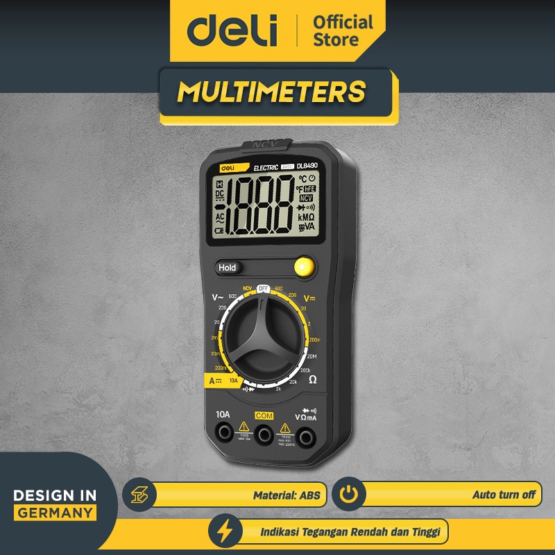 Deli Multimeter/Alat Ukur Arus Listrik Digital 600V AC DC Diode Multitester DL8490 Alat Perkakas