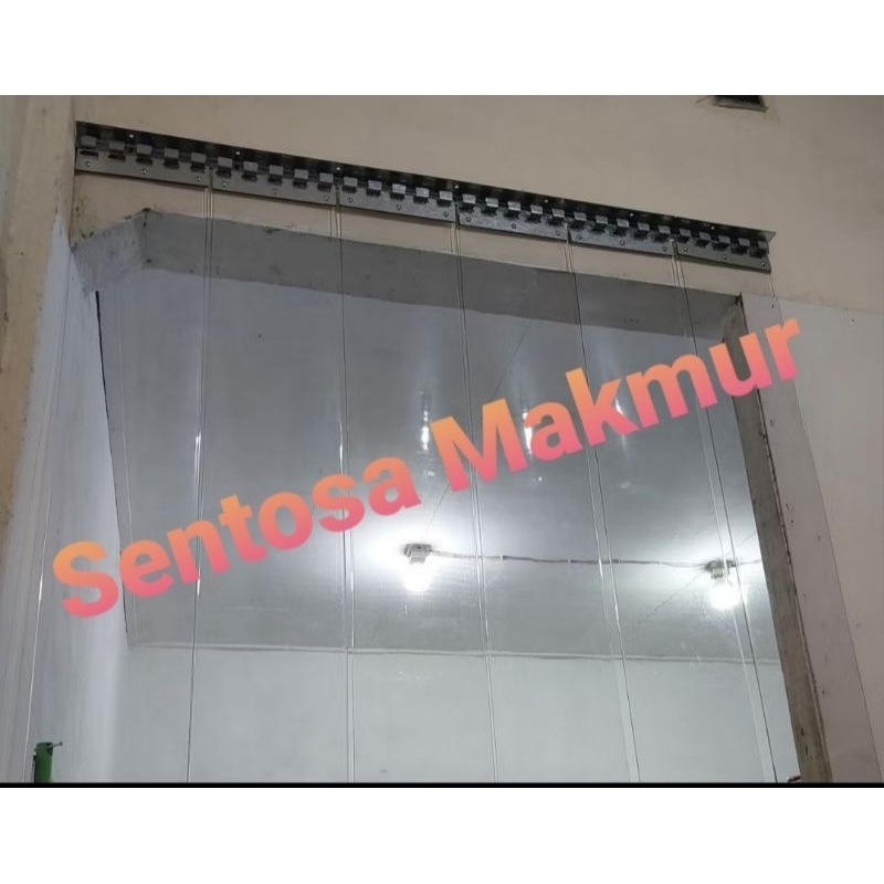 TIRAI PLASTIK PVC CURTAIN PAKET Blue Clear/Bening.Lengkap Bracket dan Tinggal Pasang