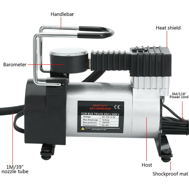 Kompresor Mini cet heavy duty150 psi dan Adaptor 12v 5A - Pompa Ban Air Compressor DC 12V Kabel 2.5 Meter + adaptor - co