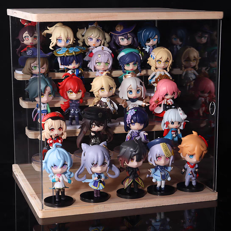 [LED+Akrilik+Kayu] Display Box Penyimpanan Bening Multifungsi Rak Pajangan Akrilik Mainan Gambar Parfum Figur cxq