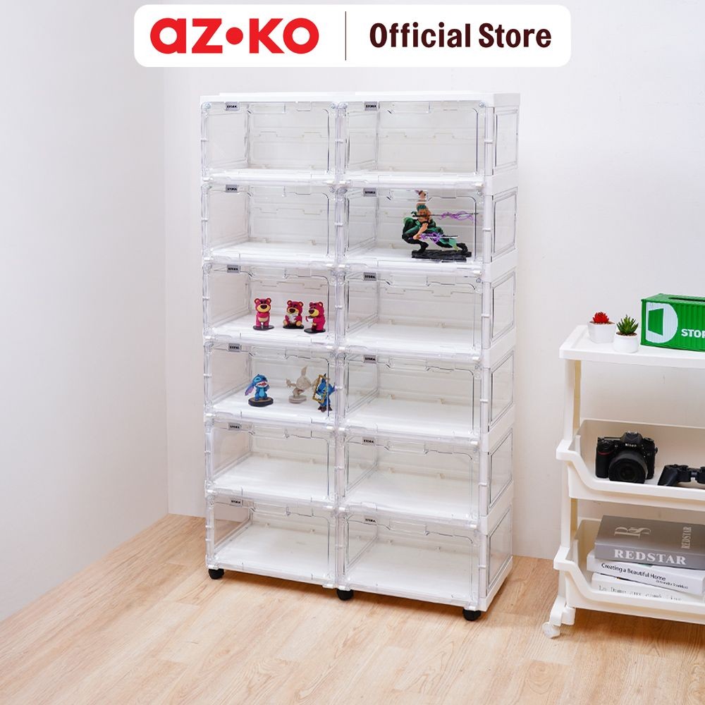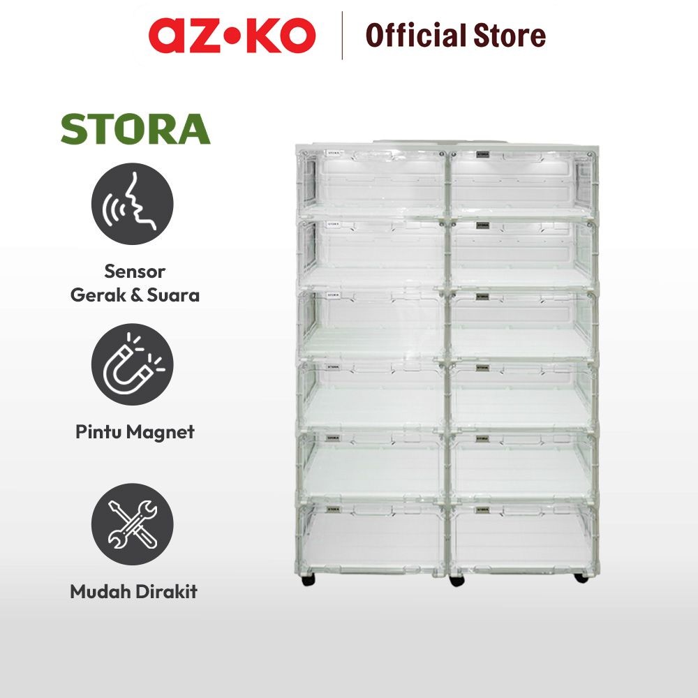 AZKO Stora Kotak Sepatu Lipat 12 Tingkat Dengan Lampu Led - Putih Organizer Sandal Dan Sepatu Rak Lemari Alas Kaki Serba