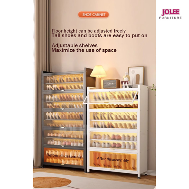 JOLEE-Lemari sepatu serba logam/rak sepatu tertutup/lemari penyimpanan multi-lapis 4/5 pintu