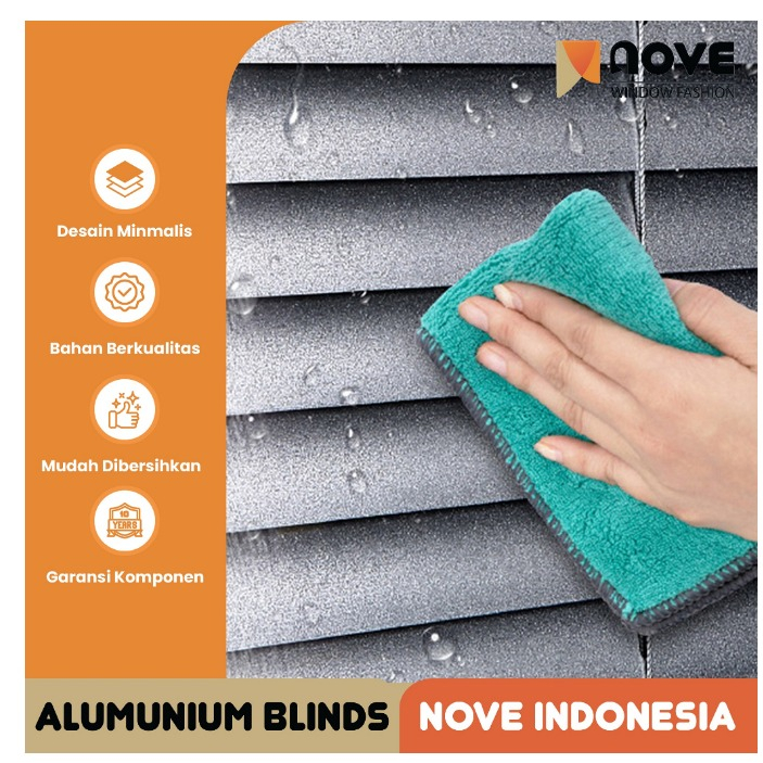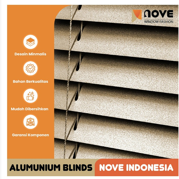 Nove Alumunium Blinds Stick + Cord - DELUXE SLAT - Tirai Gulung Alumunium - Tirai Minimalis Jendela