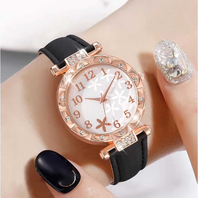Jam Tangan Wanita Quartz Pola Bintang Laut Berlian Tali Kulit Fashion Elegan