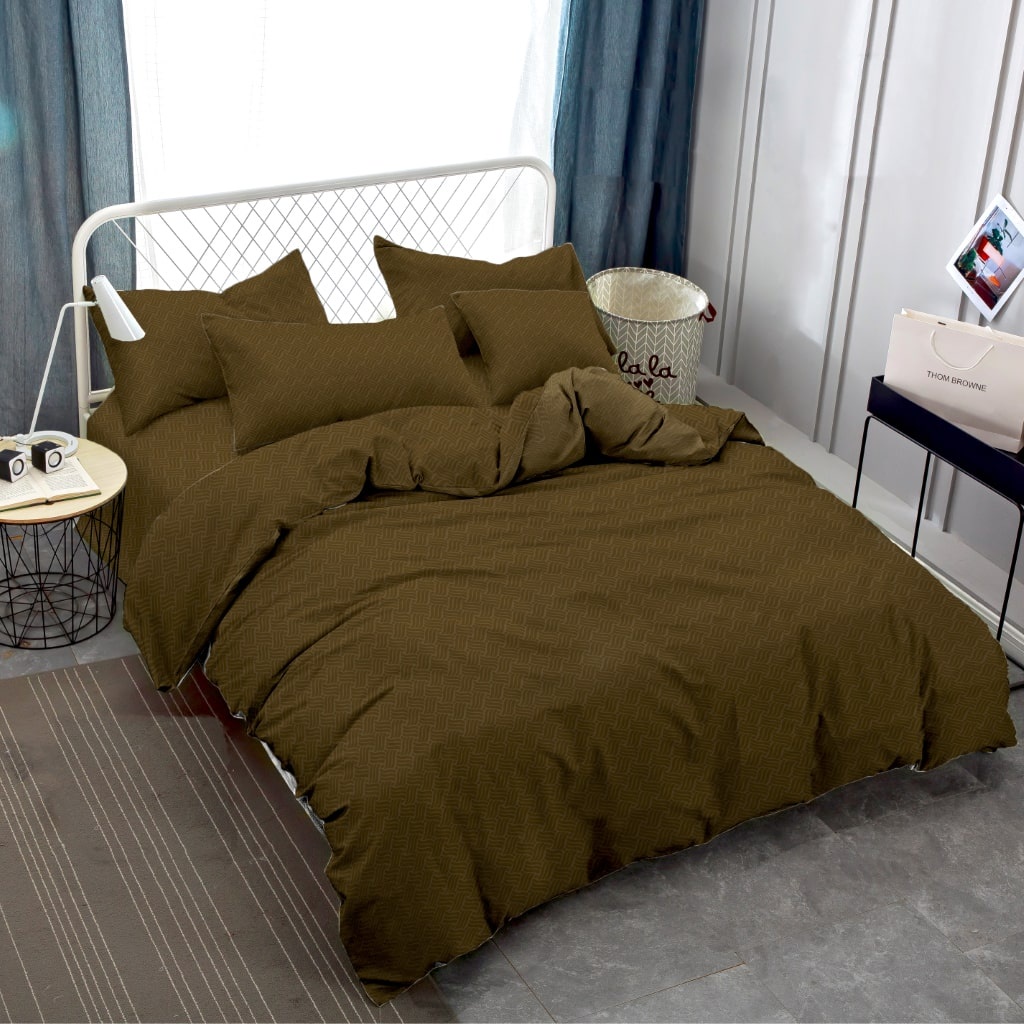 TERLARIS Vallery Quincy Bed Cover Set King 180x200 Tinggi 30 Emboss Coffee