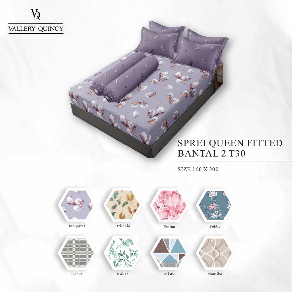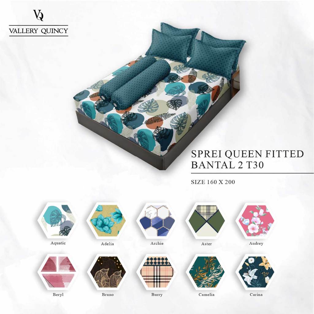 TERLARIS Vallery Quincy Sprei Queen 160x200 Tinggi 30 Bantal 2 Live