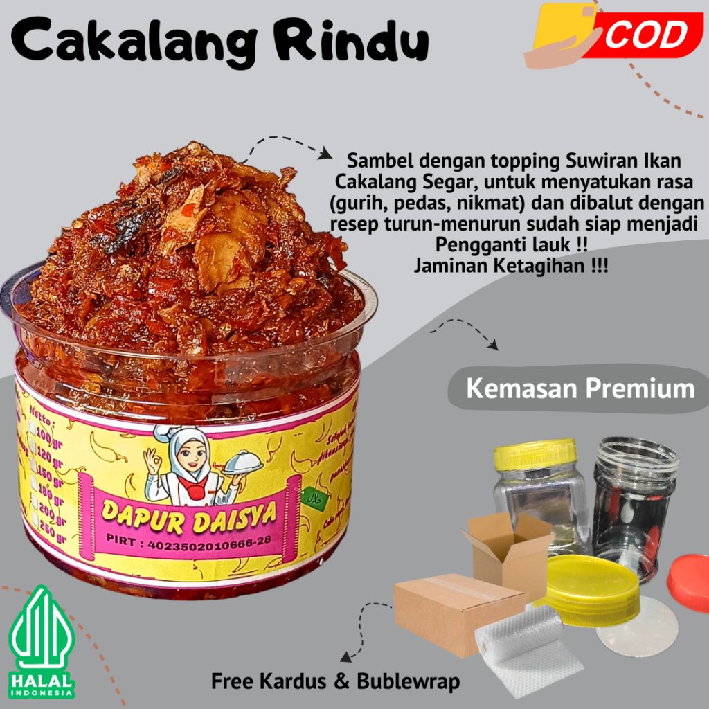 CUMI-MANJA (200 Gr), SUWIR AYAM (200 Gr), CAKALANG (200 Gr), TERI-NAK (200 Gr), PECEL (200 Gr)