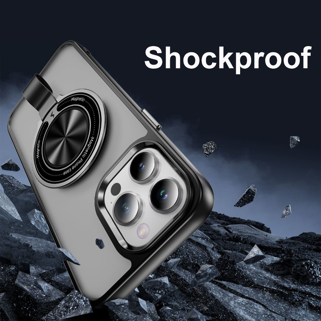 Korabo Frosted Ring Case For IPhone 16 Pro Max Casing Magnetic Kickstand with Finger Strap