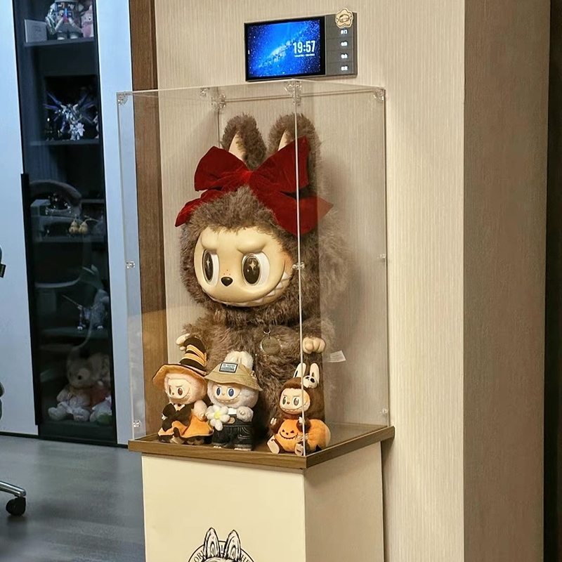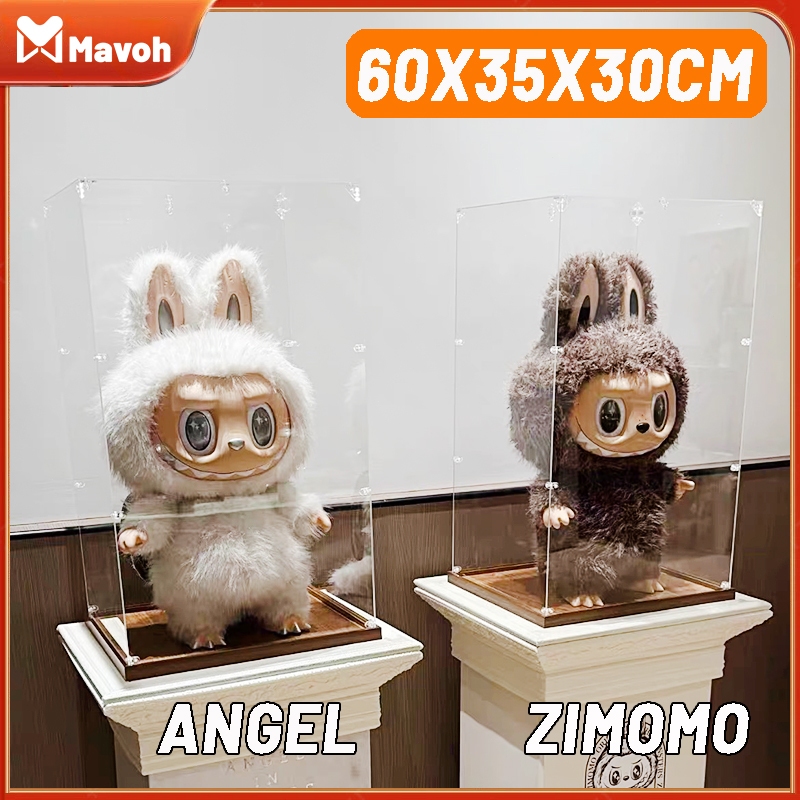 Kotak Display ZIMOMO/ANGEL Akrilik Popmart Labubu Display Box Degan Alas Kayu 2cm LABUBU Akrilik Transparan Kotak Displa