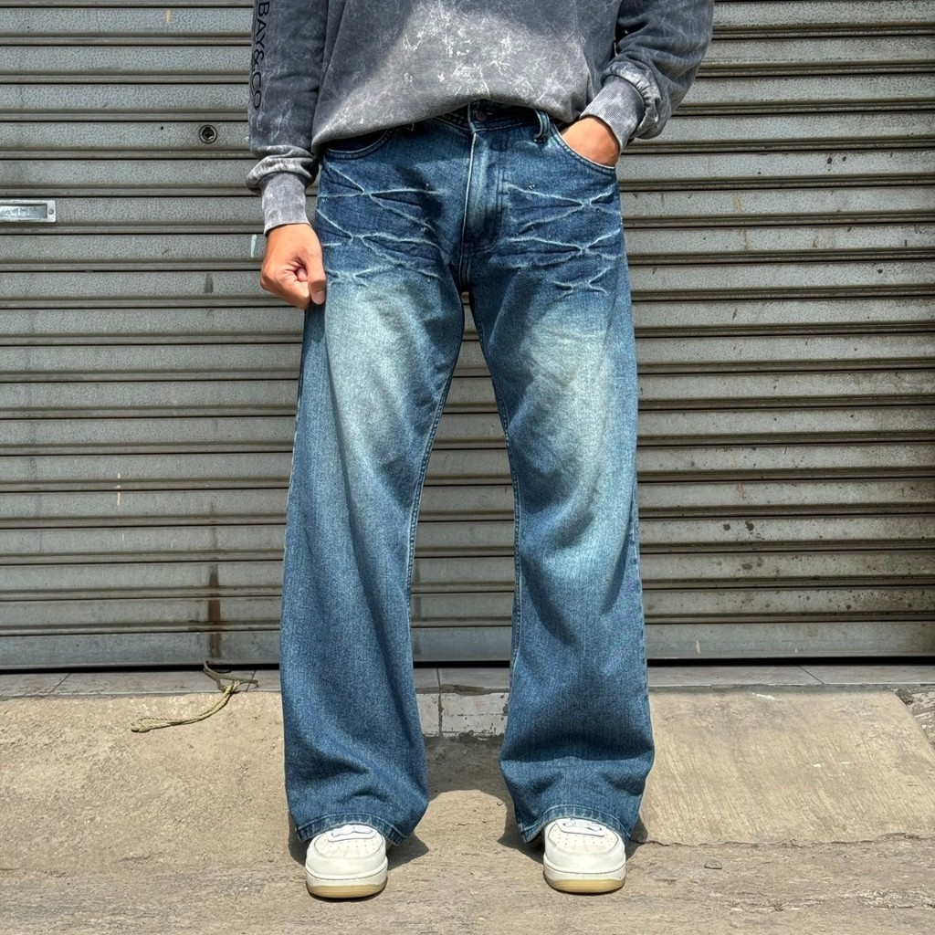CELANA JEANS DENIM RETRO PANJANG GOMBRANG SKENA PRIA WANITA DEWASA REGULER ORIGINAL BANDUNG