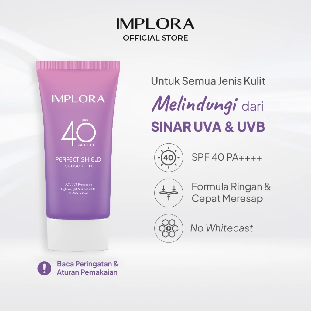 Implora Official Store | Implora Perfect Shield Sunscreen SPF 40 PA++++ 50ml | Implora Sunscreen Wajah