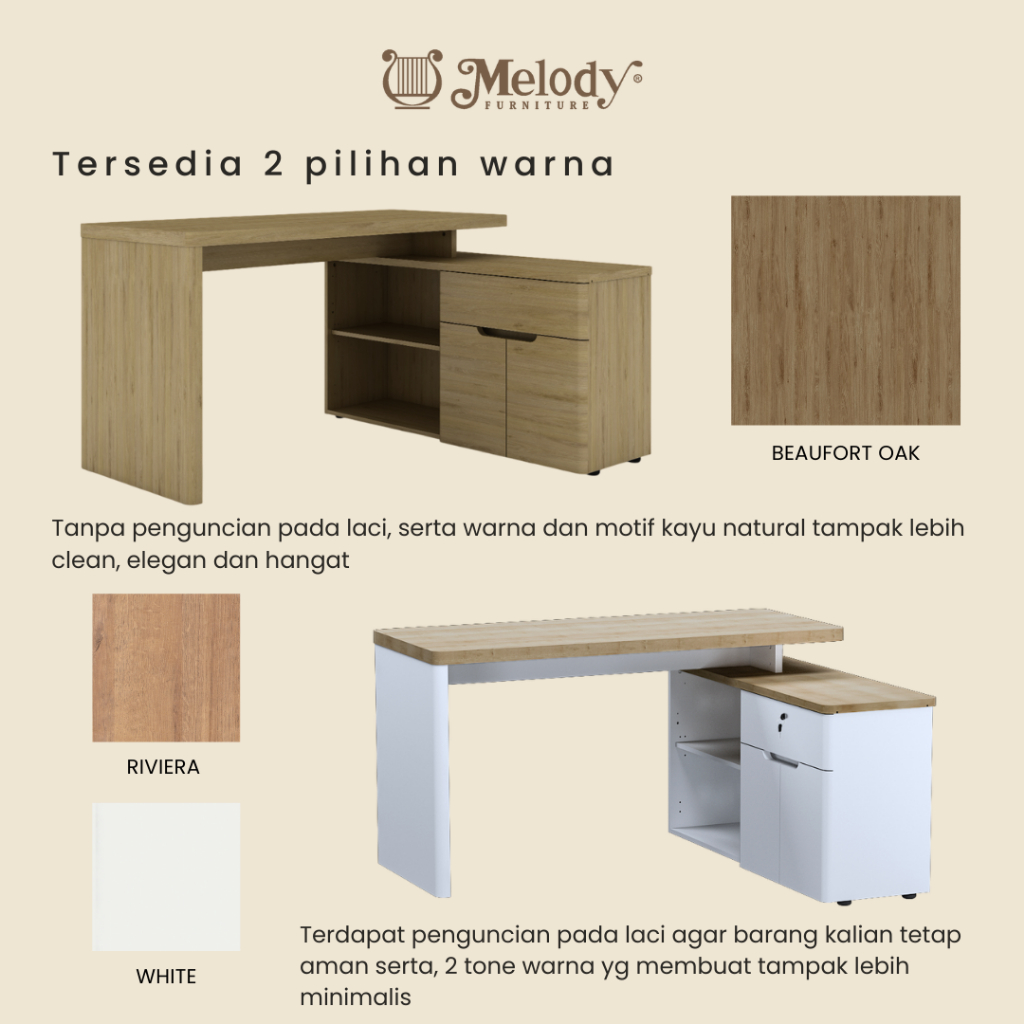 Melody Furniture - Meja Kerja Sudut Meja Belajar Kantor Tipe L Minimalis Modern - LIBRE 150 cm