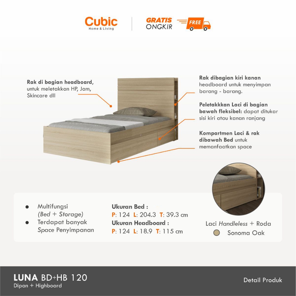 Cubic Dipan Kasur 120 X 200 / Ranjang Tempat Tidur / LUNA HBD 120