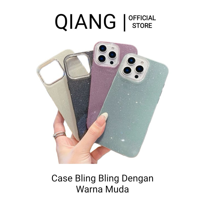 Qiang Case Blink Blink Colorful Simpel Glitter For iPhone 11 12 13 14 15 16 Pro Max Plus Pelindung Camera