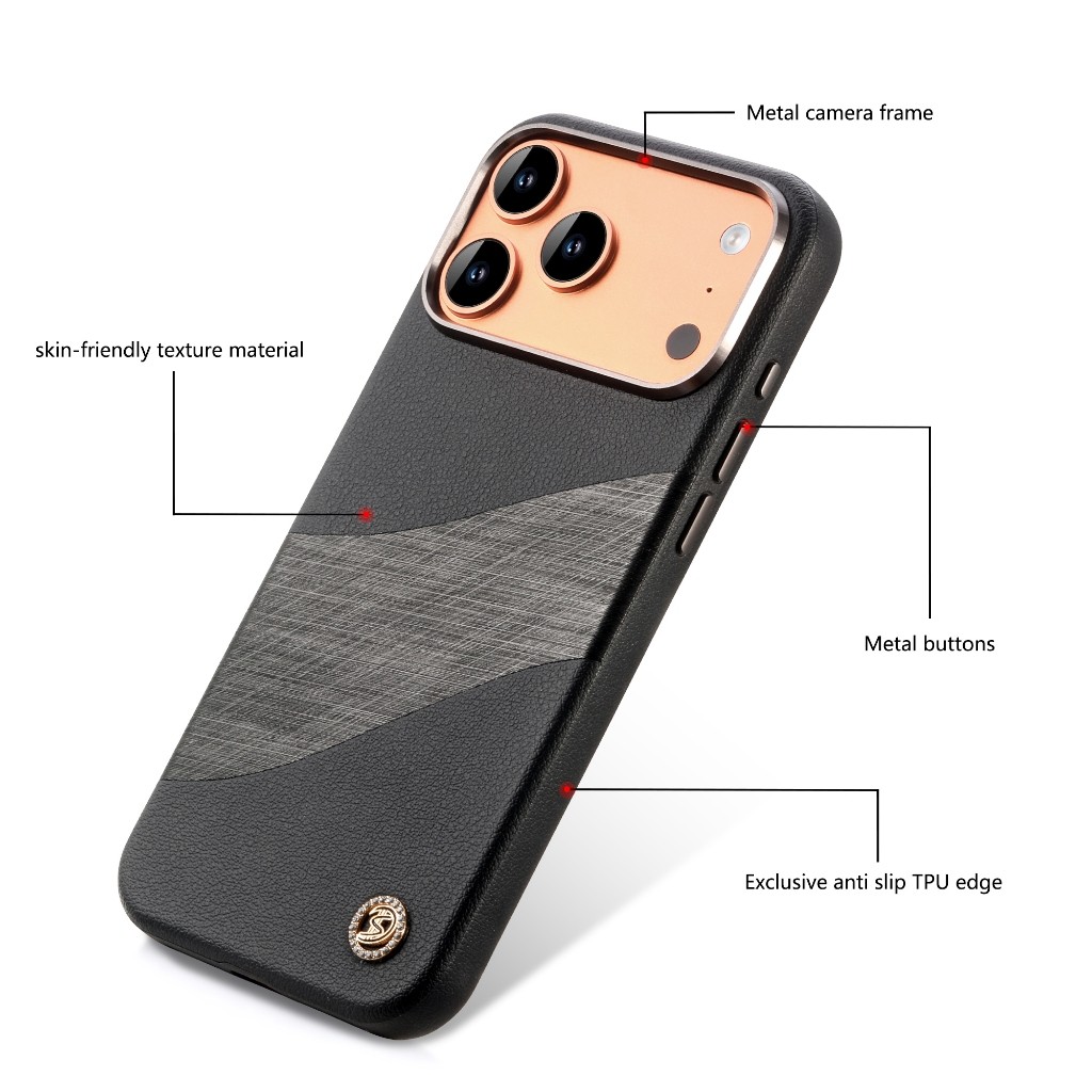 Korabo Obsidian Curve Lux Case Untuk iPhone 17 16 Pro Max Series Casing Leather & Metal Hybrid