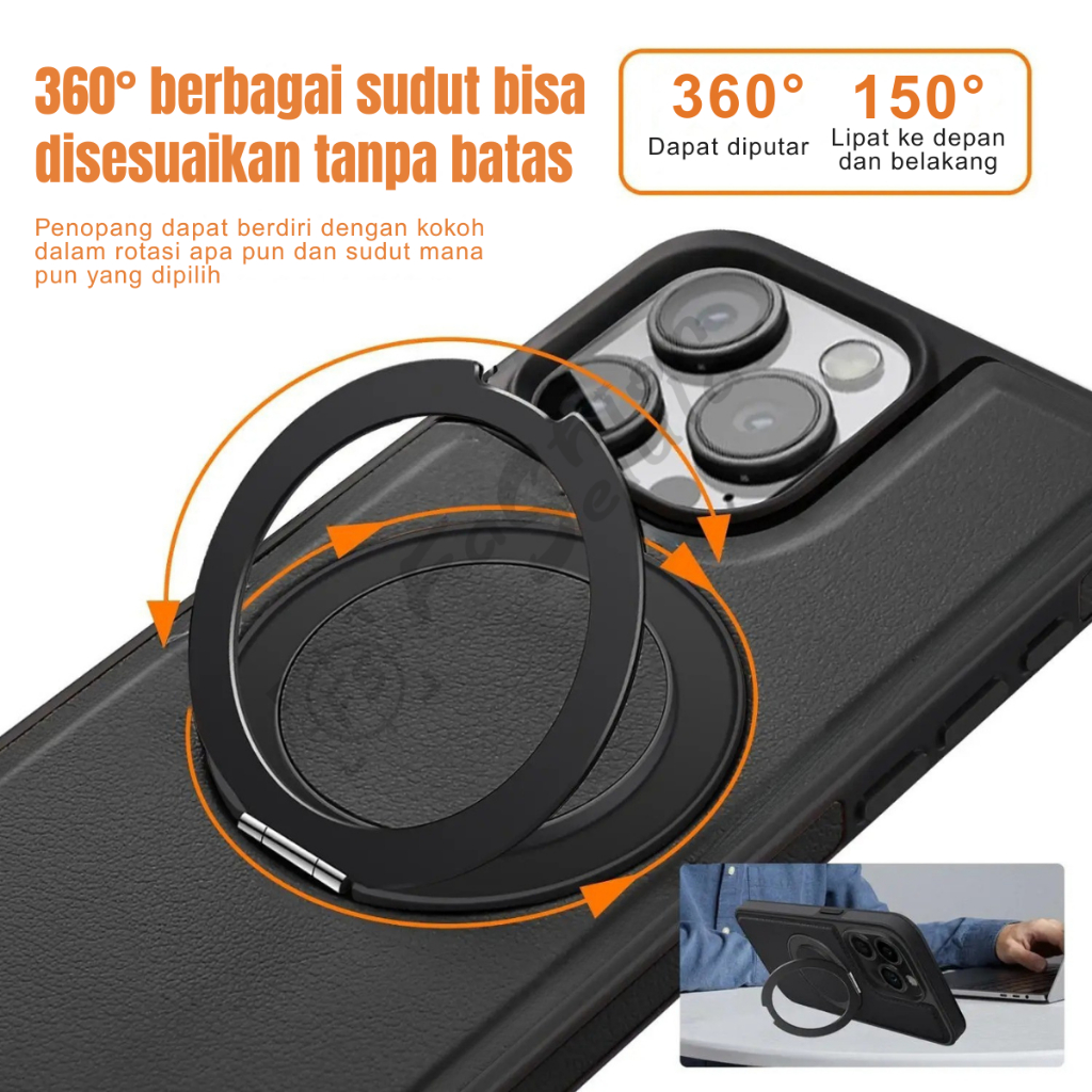 FS Case Bluemoon iPhone 16 15 14 13 12 11 Plus Pro Max Leather Magsafe Ring Stand
