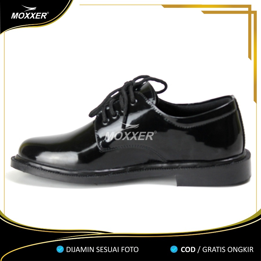 MOXXER Sepatu PDH Pendek 01 TNI Sepatu Dinas PDH TNI AD Polri Satpam Security Pria Sepatu Kantor Kerja Hitam Kilap Tali