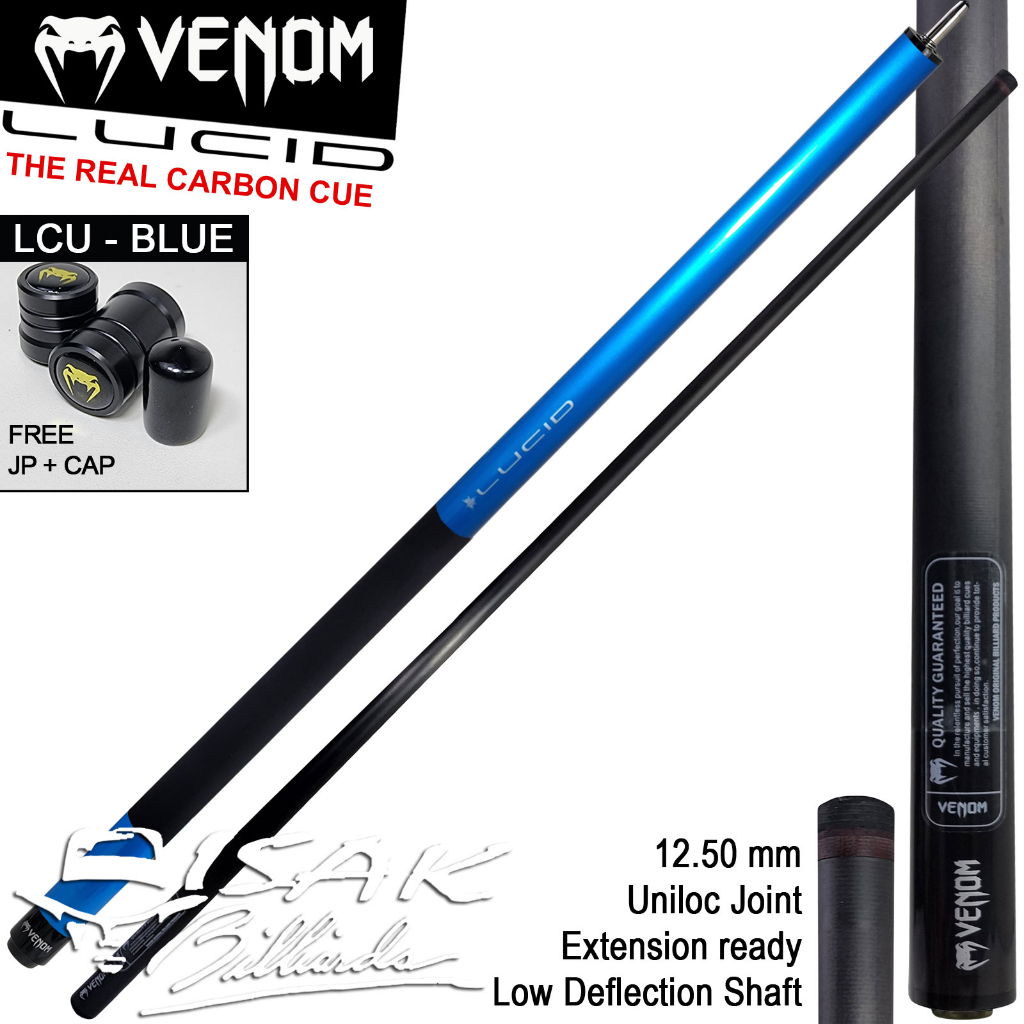 Venom Lucid Carbon LCU Blue Cue - Uniloc Extension Bumper Stick Billiard