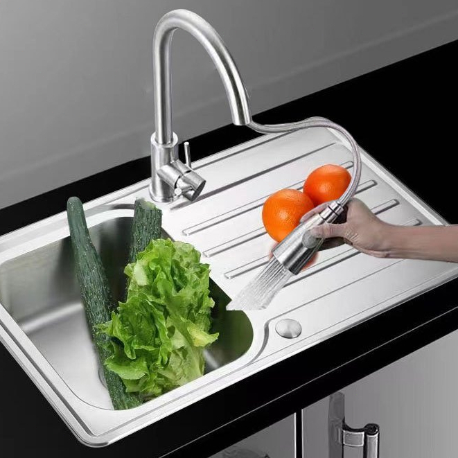 TQTQ Bak/Wastafel Cuci Piring Stainless 75 x 40 Cm Dapur Satu Lubang Kitchen Sink Set Lengkap