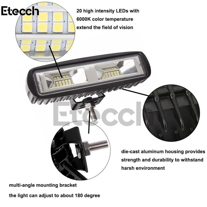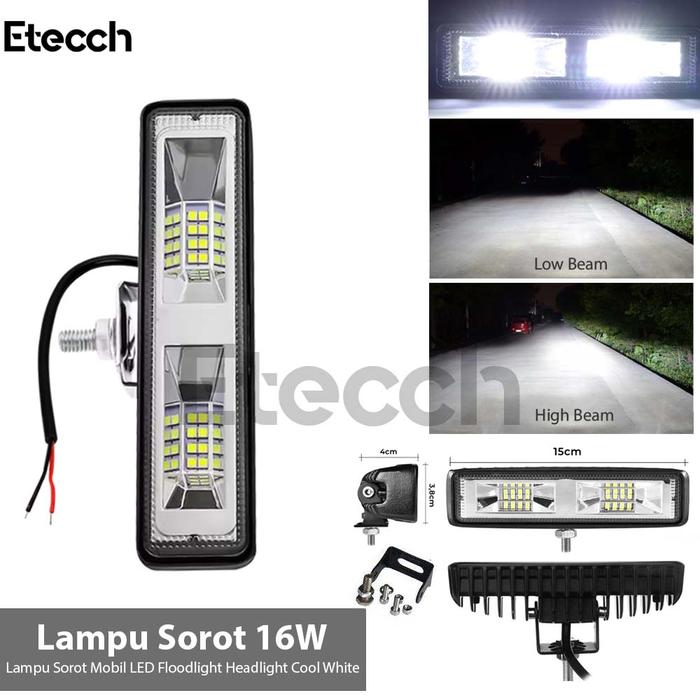 SUPER HEMAT ! LAMPU SOROT MOBIL LED FLOODLIGHT HEADLIGHT COOL WHITE 16W BUMPER CAR MURAH