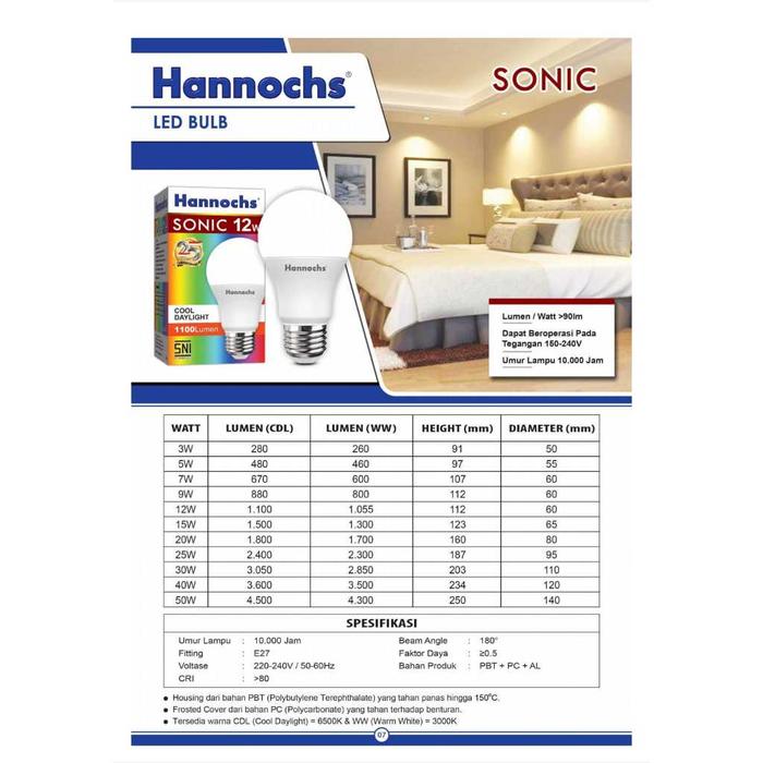 SUPER HEMAT ! HANNOCHS SONIC LAMPU LED 3W 5W 7W 9W 12W 15W 20W BOHLAM LAMPU LED TERANG - SONIC 3 WATT MURAH
