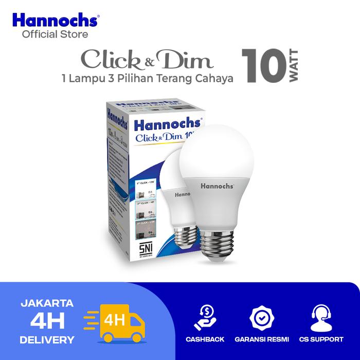 SUPER HEMAT ! HANNOCHS - LAMPU LED CLICK & DIM - 10 WATT - 3 TINGKAT KECERAHAN - CAHAYA PUTIH - PUTIH MURAH