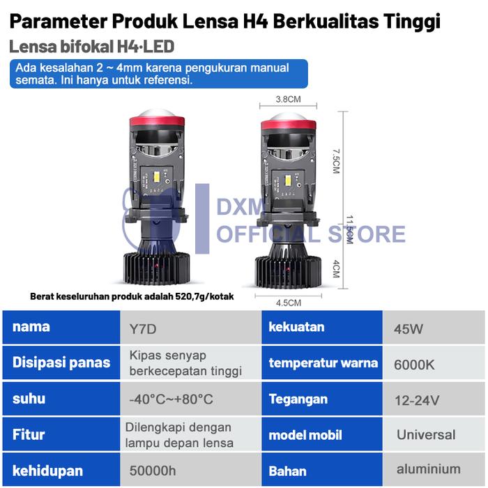 SUPER HEMAT ! PREMIUM LAMPU UTAMA LED H4 ORIGINAL Y7D 45W HIGH LOW DC PUTIH PUTIH - DOUBLE MURAH