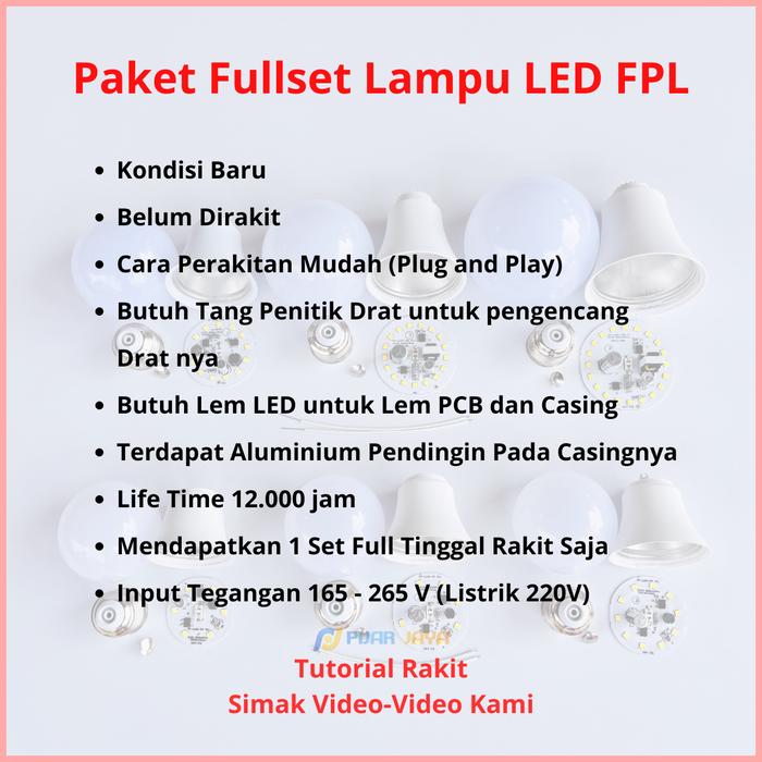 SUPER HEMAT ! PAKET LAMPU LED FPL FULL SET SIAP RAKIT 5 7 9 12 15 18 24 WATT - FULLSET 5 WATT MURAH