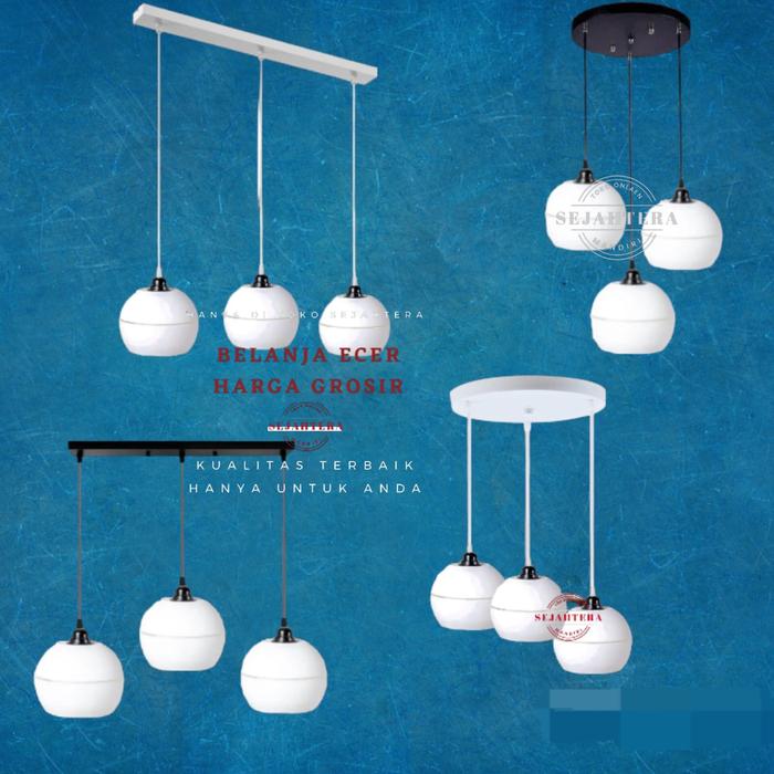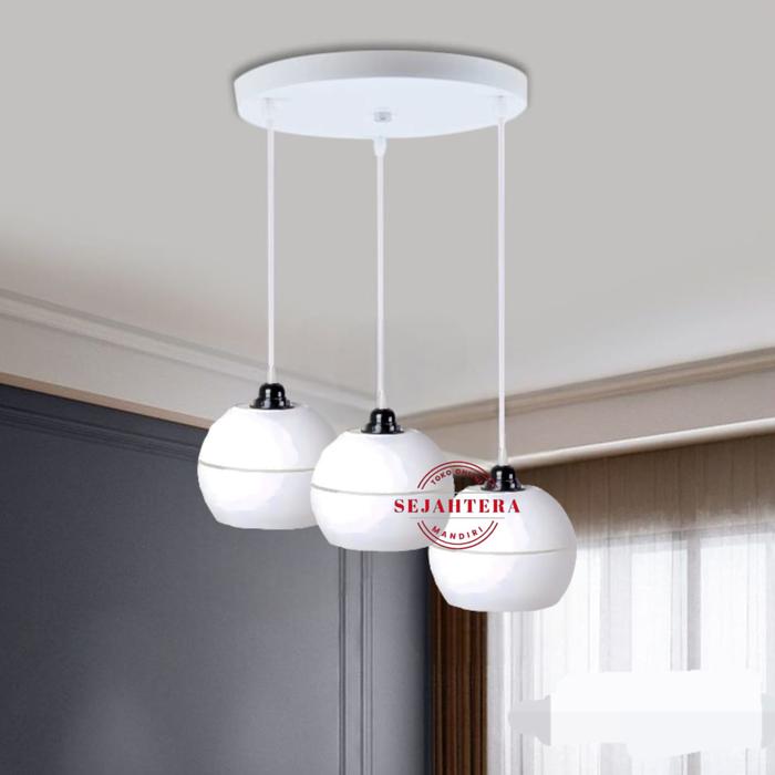SUPER HEMAT ! LAMPU HIAS GANTUNG MINIMALIS CABANG 3 PUTIH DEKORASI KAMAR - 06 CABANG 3 BULAT MURAH