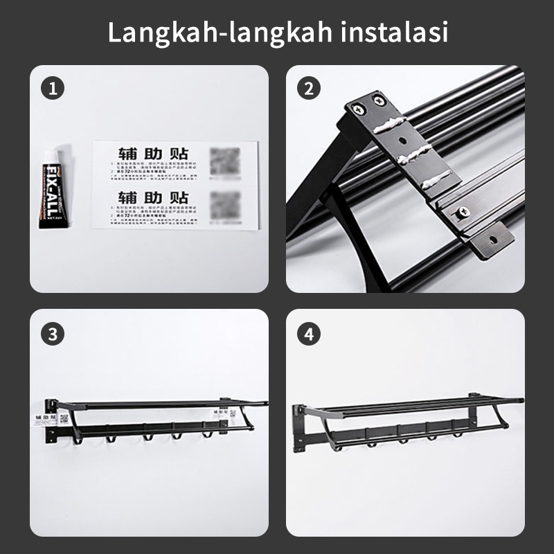 [PROMO] 【Produk Baru】Tanpa Lubang Rak Gantungan Handuk 405060CM Rak handuk lipat Pangan Tanpa Bor Anti Karat