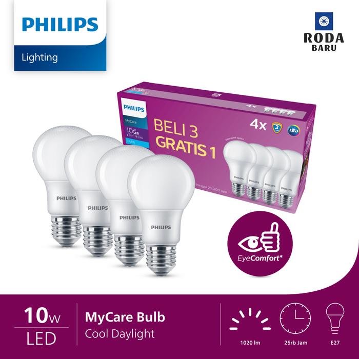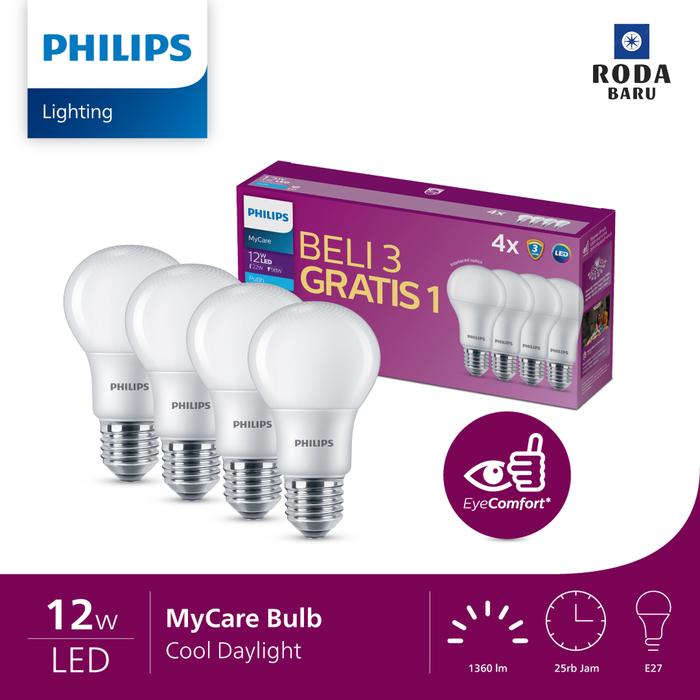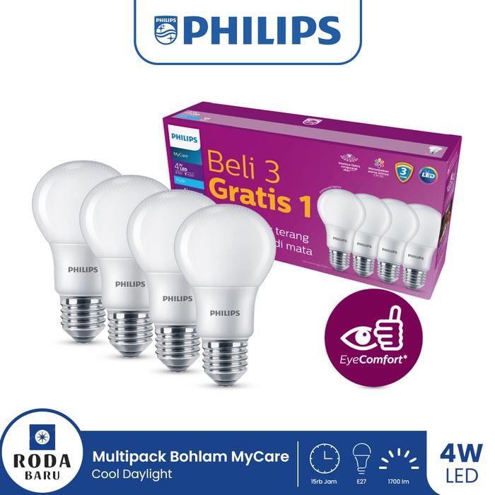 SUPER HEMAT ! [PROMO BELI 3 GRATIS 1] LAMPU PHILIPS LED BULB MYCARE 4W,6W,8W,10W,12W,14,5 - PUTIH 6500K - 4 WATT MURAH