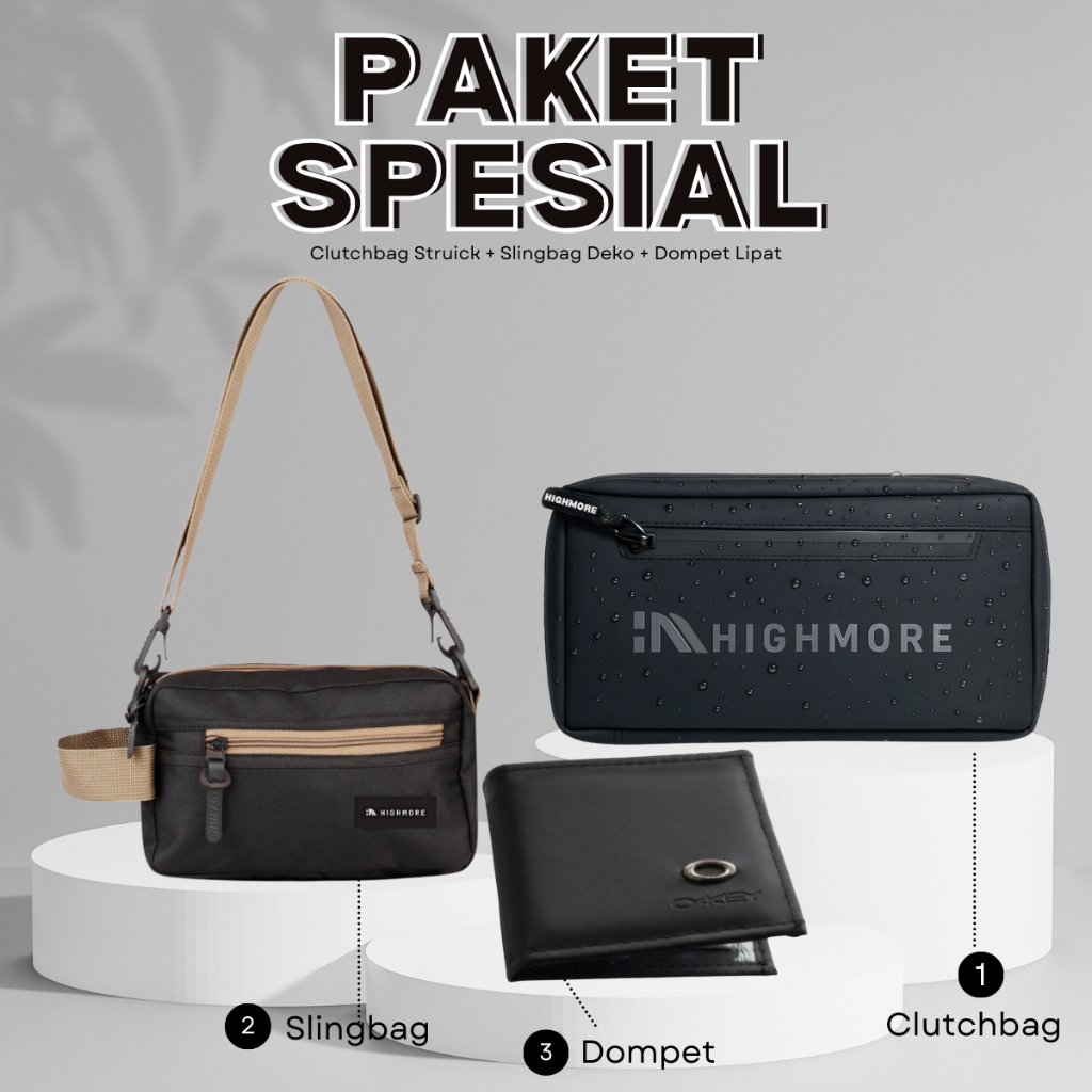 PAKET SPESIAL Tas Pria Highmore Clutchbag - Slingbag - Dompet Kulit Premium