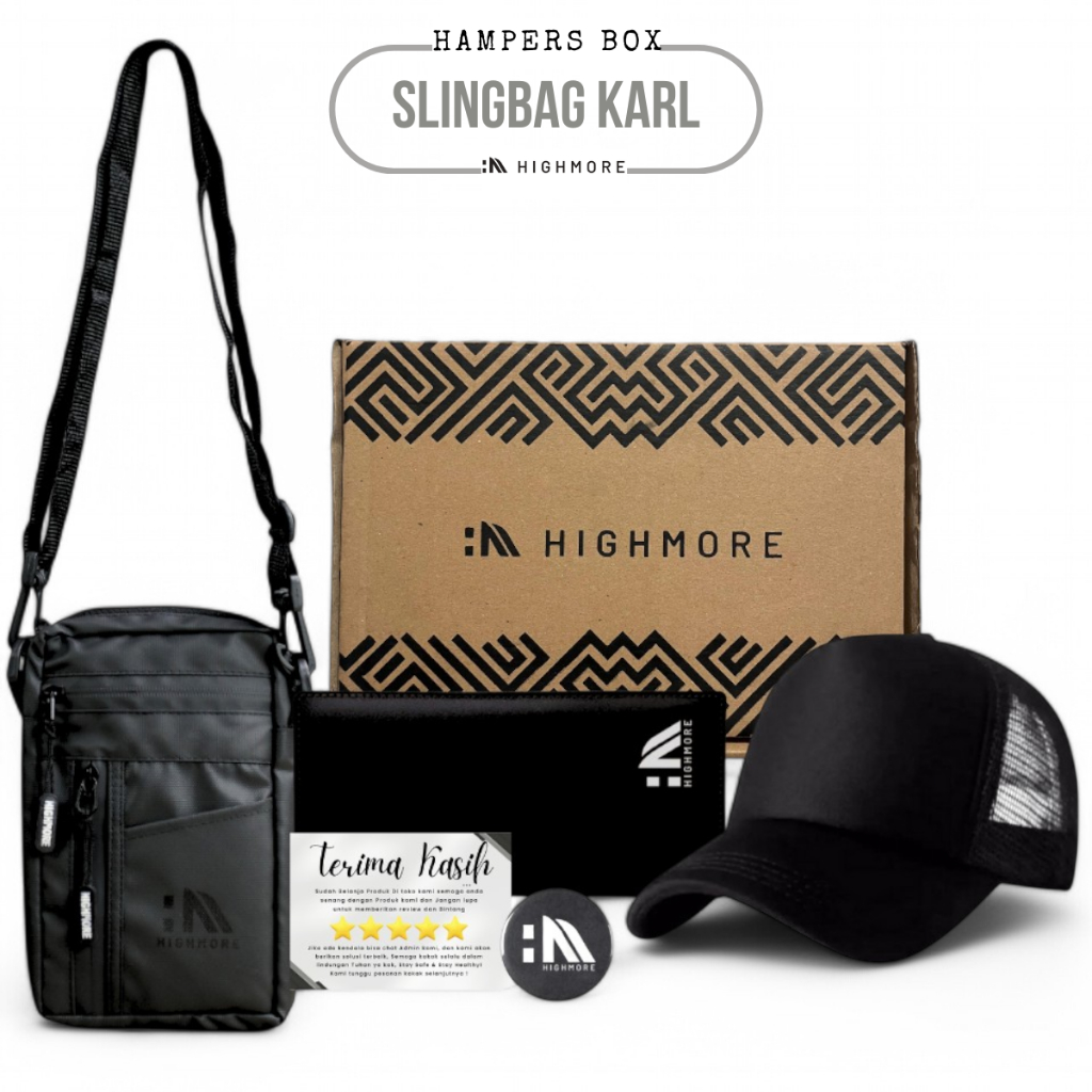Paket Hampers Hadiah Pria Highmore Tas Selempang Handbag Waterproof Dompet Topi Kado Cowok Ekonomis