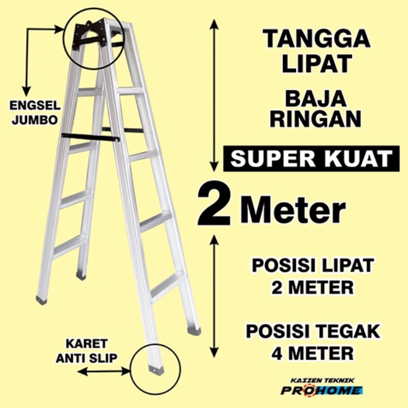 Tangga Lipat Super Kuat dan Aman - Versi Upgrade Tidak Tajam/ Engsel Jumbo /1 M s.d 2,5 M Bahan Baja
