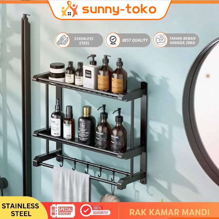 [PROMO] Sunny Rak Kamar Mandi Rak Bumbu Dapur Rak Handuk Rak Dinding Stainless Steel Rak Sabun Hitam