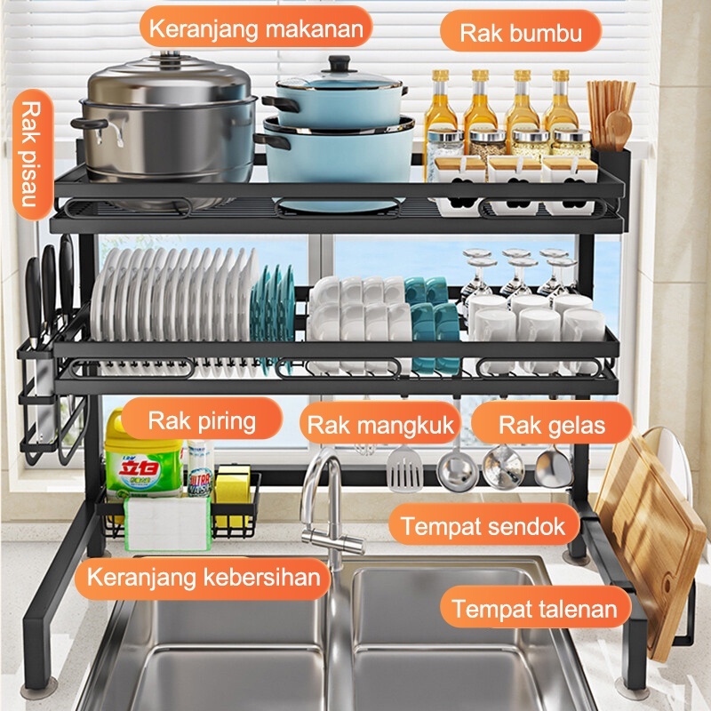 [PROMO] Sunny Rak Piring Wastafel Stainless Steel Rak Cuci Piring Dapur Rak Penyimpanan Piring