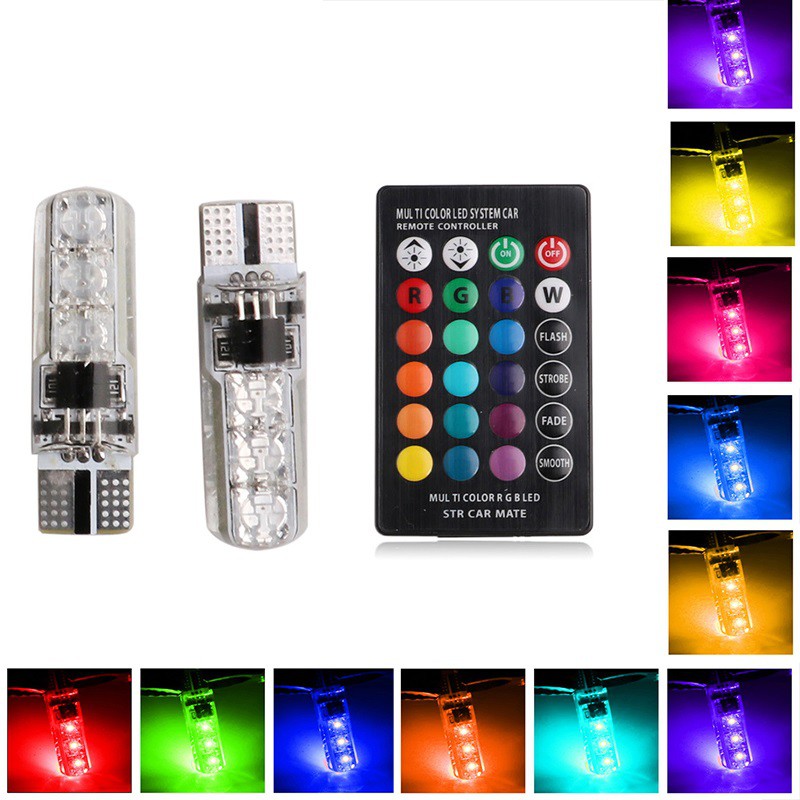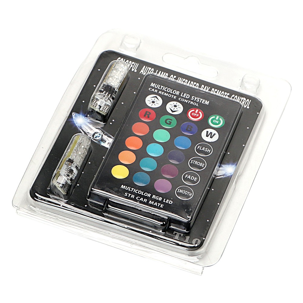 TERLARIS 2 Pcs Lampu Senja LED RGB T10 5050 SMD 16 Warna Motor Mobil Remote