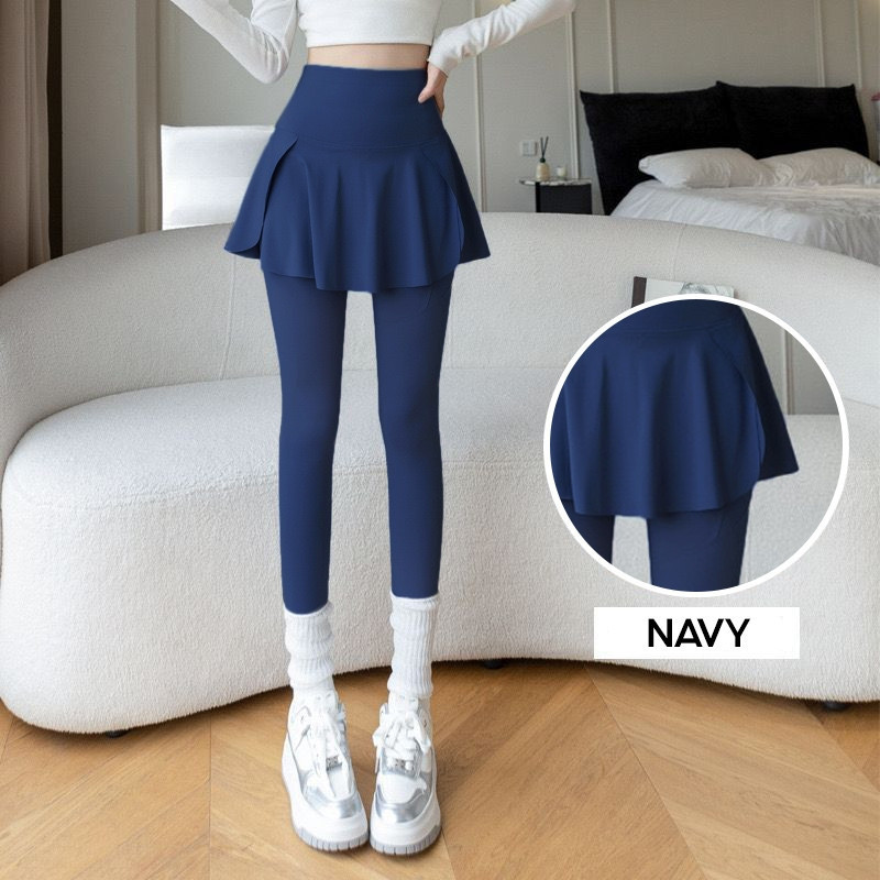 Legging 2-in-1 Rok Celana Olahraga Wanita Highwaist Legging Olahraga Pilates Yoga Senam