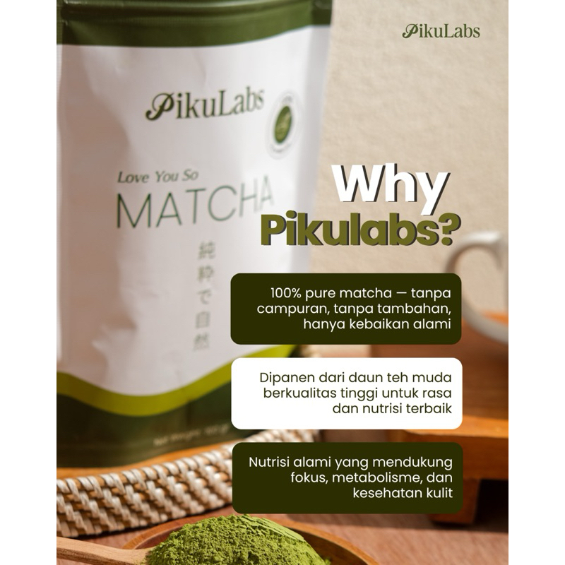 PikuLabs Pure Matcha Powder 100gr | 100% Pure, No Additives